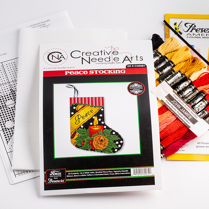 Kit Includes: 18ct White Aida Cloth, Presencia Floss, Tapestry Needle, Ribbon, Black & White Pattern, and Illustrated Basic Cross Stitch Instructions