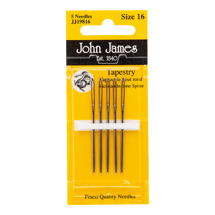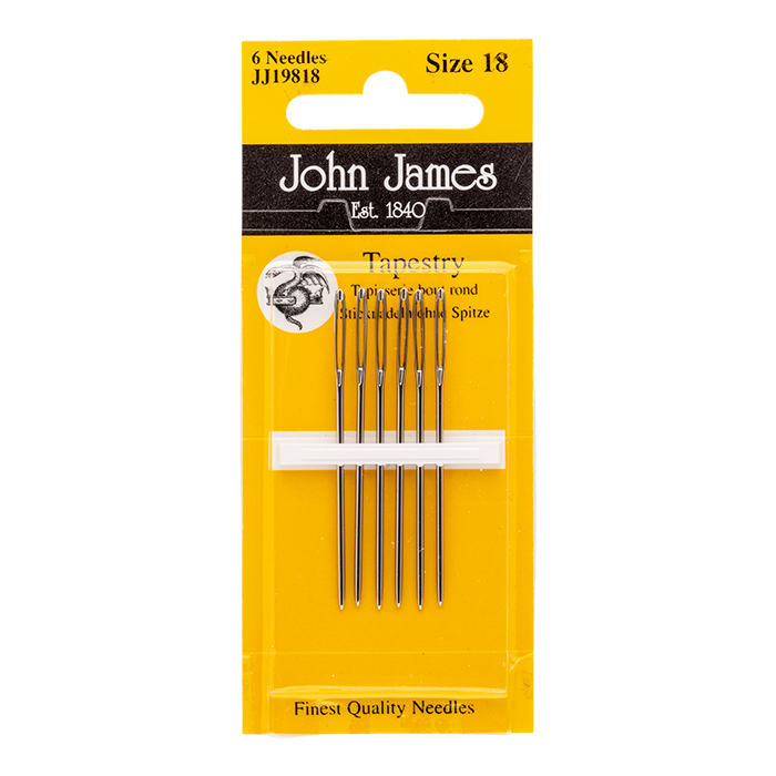 The JJ Tapestry Needle is designed for needlepoint and counted-thread stitching on canvas and evenweave fabrics. Featuring a large eye and blunt tip, this needle glides smoothly between fabric threads without splitting fibers, making it ideal for precise, controlled stitching.